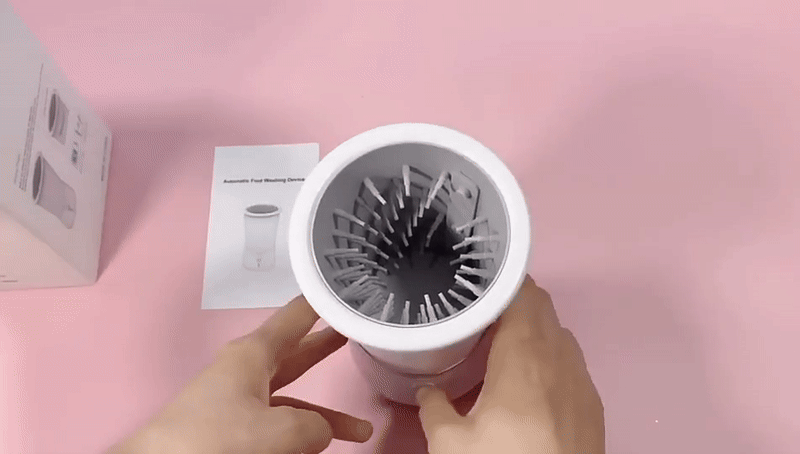 Wasser (und optional etwas Hundeshampoo) einfüllen, Pfote einsetzen und auf den Knopf drücken – die weichen 360°-Silikonborsten reinigen in 20 Sekunden automatisch Schmutz, Erde, Sand & Bakterien.